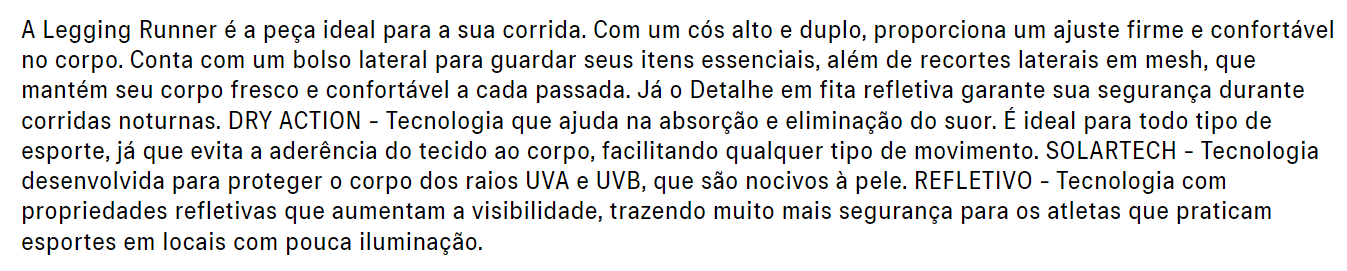 - Composição: Principal: 82% Poliéster e 18% Elastano | Detalhe: 93% Poliéster e 7% Elastano